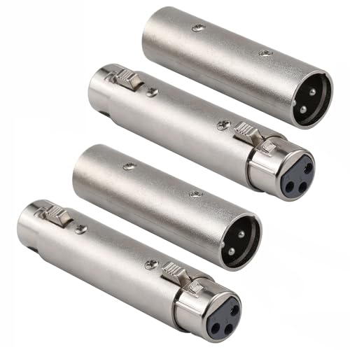 Greluma 4 st XLR till XLR Gender Change Adapter, 3-stifts XLR hane till hane/hona till hona kontaktkoppling kompatibel med mikrofon, mixer