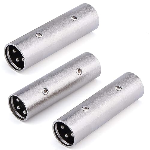 Greluma 3 st XLR till XLR Gender Change Adapter, 3-stifts XLR hane till hane anslutningskoppling kompatibel med mikrofon, mixer