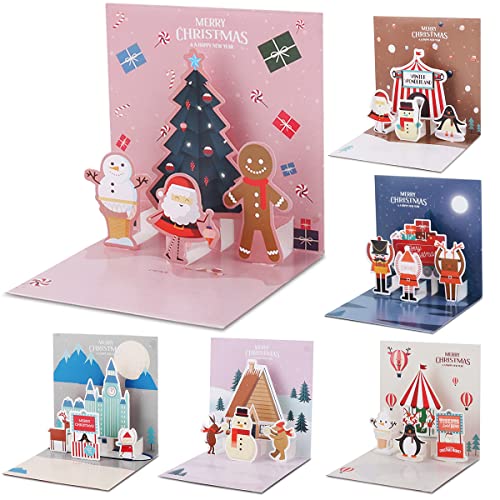Jrisbo 6 stycken julkort i 3D med kuvertset, julkort med olika popup-motiv, vikbara kort, jul, vykort, 3D-gratulationskort för vänner familj