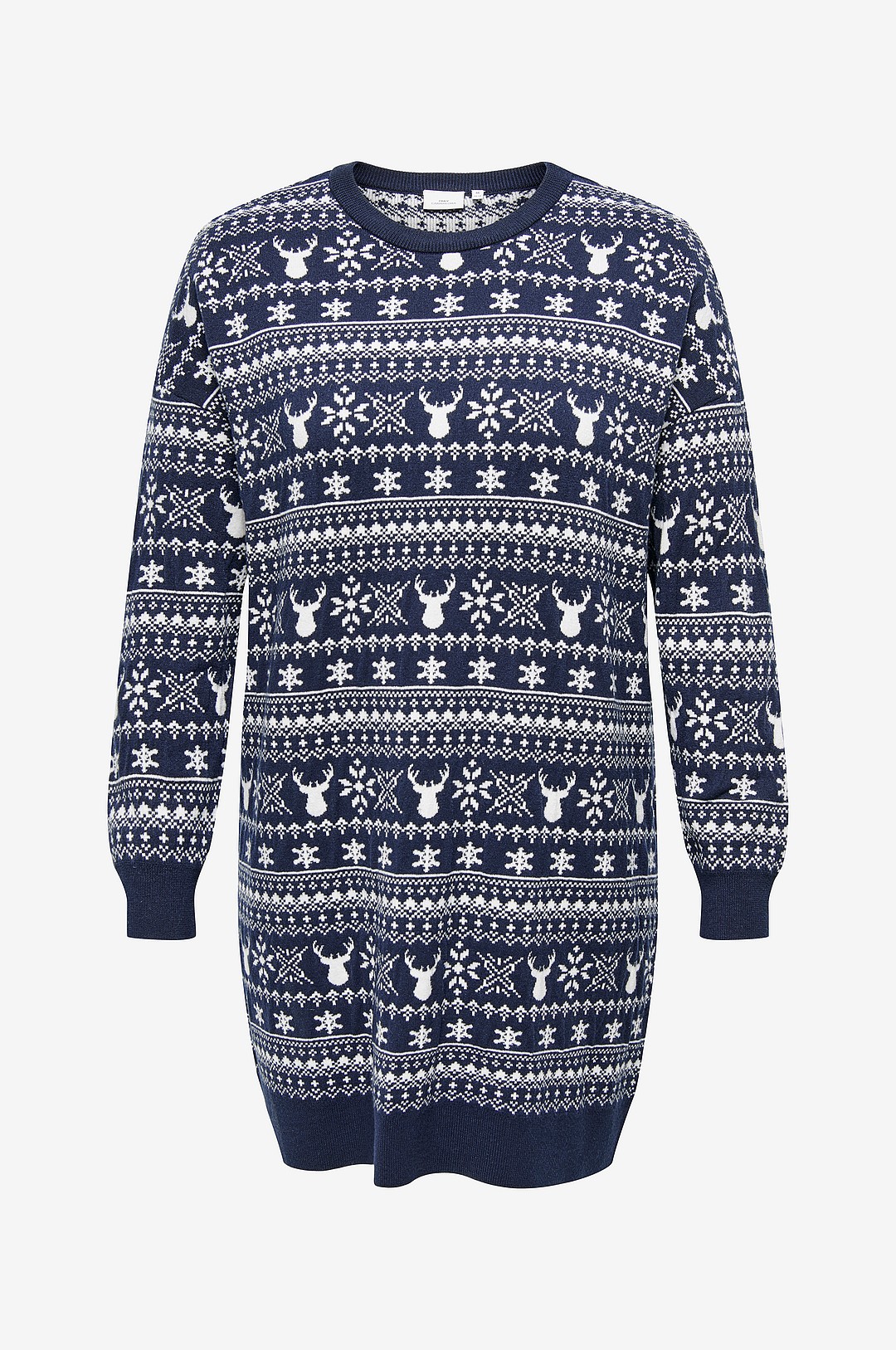 Only Carmakoma - Julklänning carXmas Winter LS O-neck Dress Knt - Blå