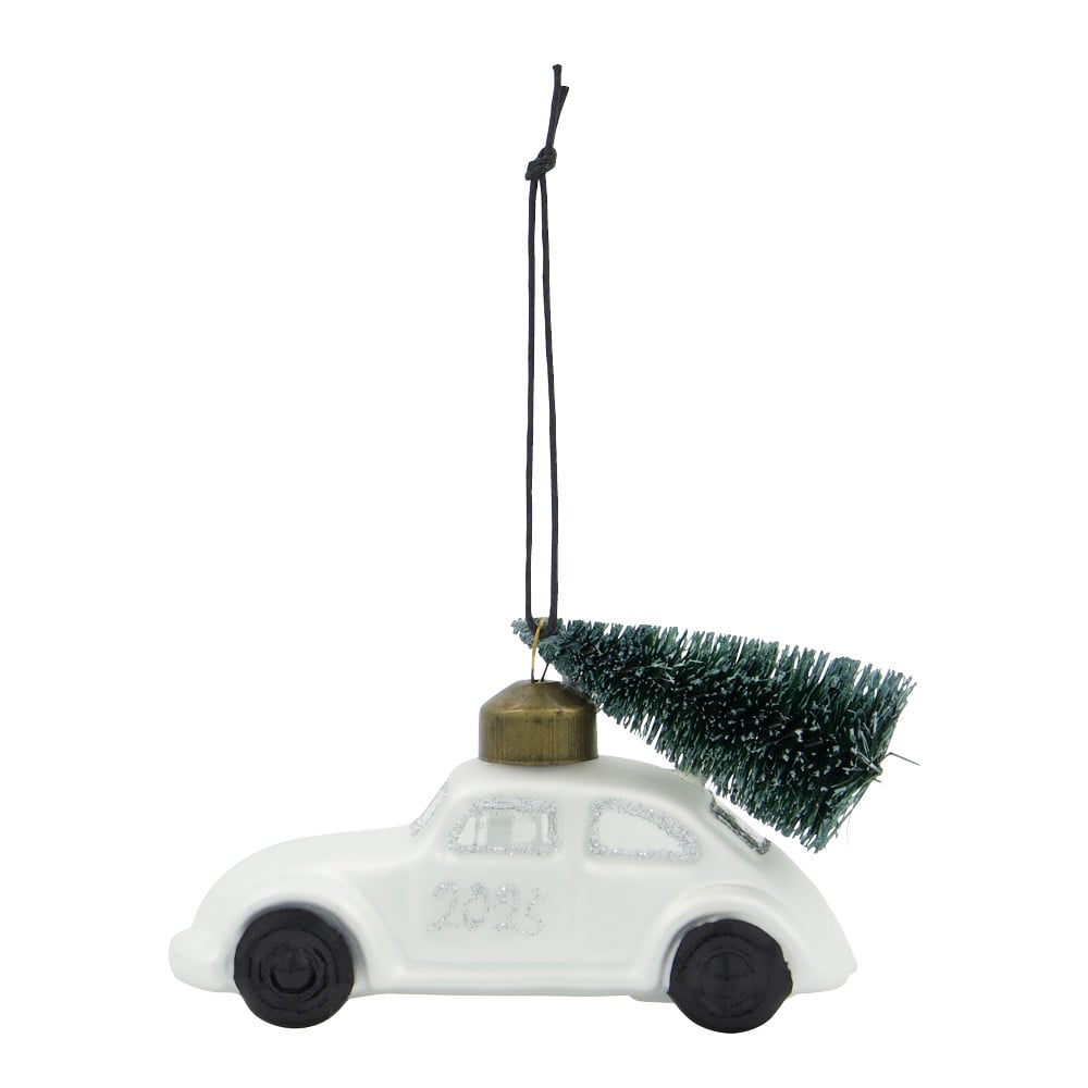 House Doctor - Xmas Car 2025 julpynt bil hänge 10,5 cm vit/silver