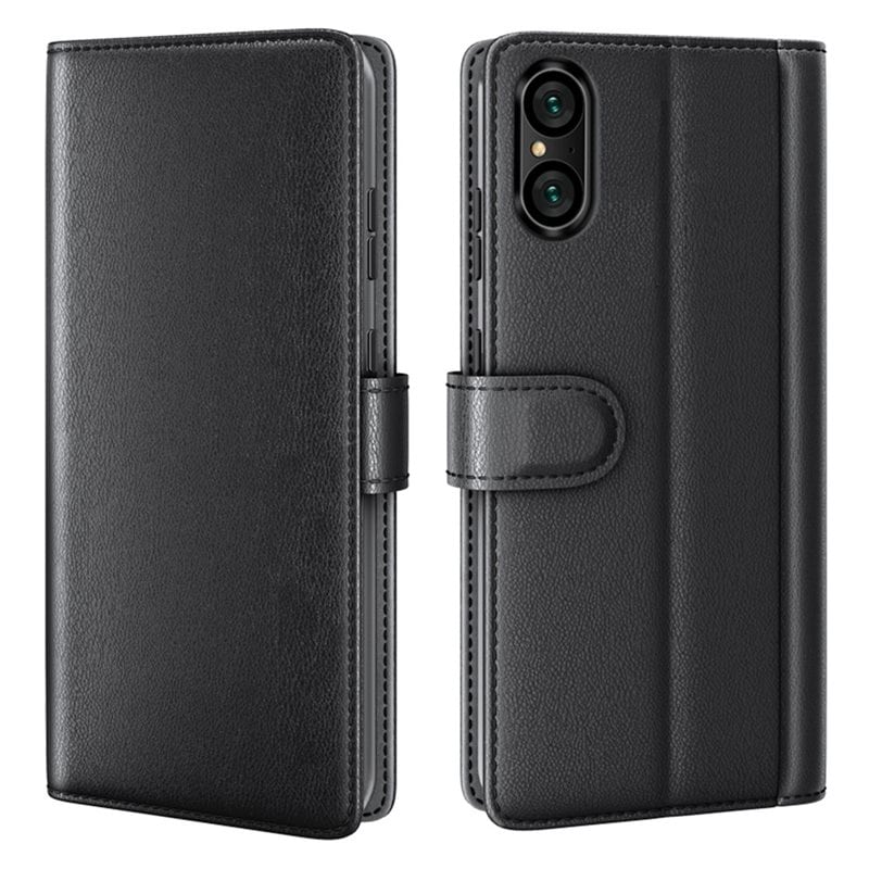 Sony Xperia 5 V Plånboksfodral i Äkta Läder, Svart