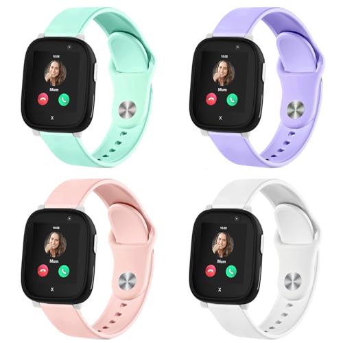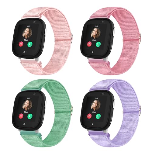 Seltureone 4 stycken armband kompatibla med Xplora X6 Play, stretchigt mjukt ersättningsarmband som andas, justerbart armband för flickor – lila/grön/rosa/mörkrosa, Fläta