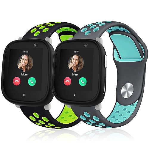 Polyjoy 2 stycken silikonarmband för barn, kompatibla med Xplora X6-armband, ventilerande mjuk sport, ersättningsarmband för Xplora X6 Play/Xplora X6 Pro barn, flickor, pojkar, svart, grön, grå, blå