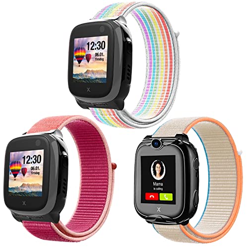 3-st barn Kompatibel med Xplora X5/XGO2/XGO3,Kids Nylon ersättningsband, Regnbåge&Pomered & Milk