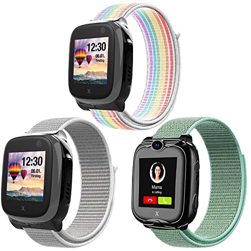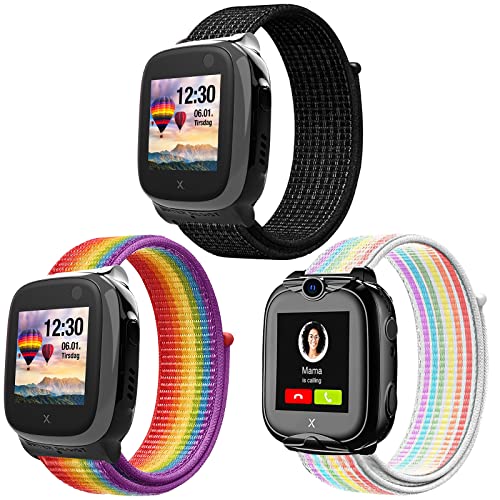 3-st barn Kompatibel med Xplora X5/XGO2/XGO3,Kids Nylon ersättningsband,Svart& Rregnbåge och neon