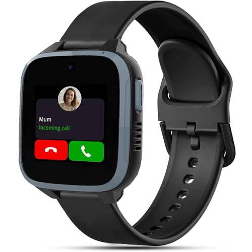 XPLORA Kidzi – Klocktelefon för barn (SIM ingår) 4G - Samtal, Meddelanden, Skolläge, SOS-funktion, GPS, Kamera och Stegräknare - inkluderar 3 månaders gratis abonnemang (SVART)