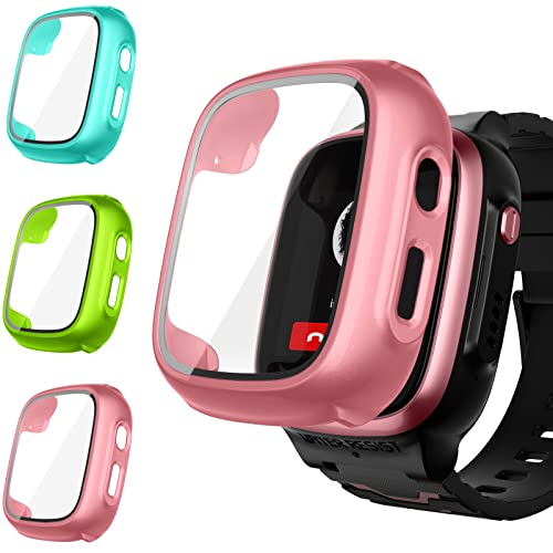 Upeak 3 stycken skyddsfodral för XPLORA X5 Play Kids skärmskydd, hårt PC-fodral, reptåligt stötsäkert hölje runt om skydd, fodral för X 5 Play-klocka, babyrosa/gräsgrön/havsgrön