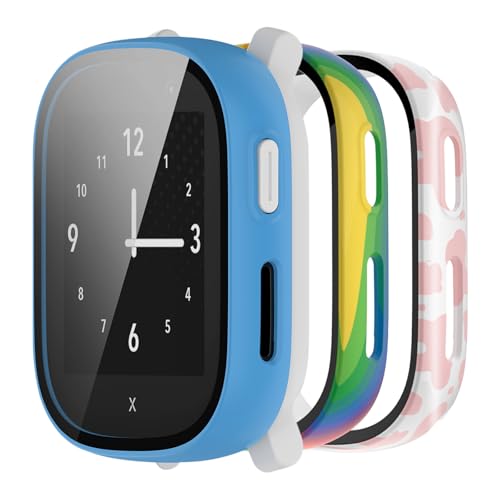 Upeak 3 stycken skyddsfodral för XPLORA X5 Play Kids skärmskydd, hårt PC-fodral, reptåligt stötsäkert hölje runt om skydd, fodral för X 5 Play-klocka, babyrosa/gräsgrön/havsgrön