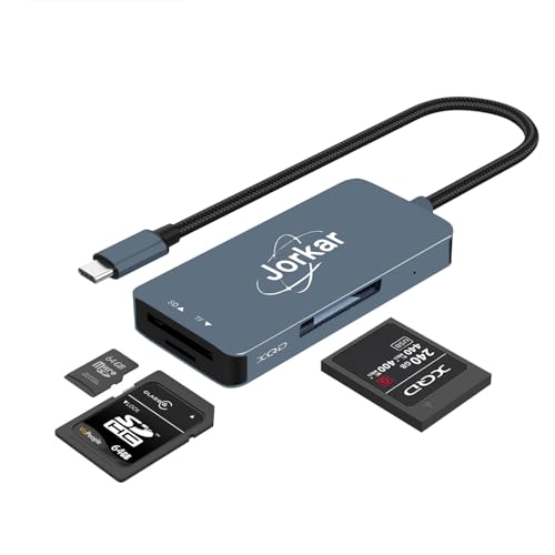 Jorkar XQD kortläsare USB-C, XQD till USB C-kamera minneskortläsare, kompatibel med Sony Nikon-kameror, 3-i-1 XQDs & SD & Micro SD TF-kortläsare (inte för CFexpress)