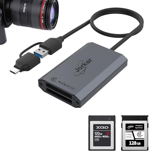 Jorkar CFexpress Typ B och XQD-Kortläsare med USB-C och USB A 3.2 10 Gbps för Nikon Canon Panasonic 2-i-1 Kameraminneskortläsare
