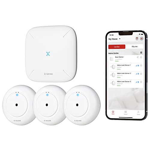 X-Sense vattenlarm WLAN, smart vattendetektor, med appvarningar, vattentät enligt IP67, trådlös vattensensor för kök, badrum, källare, SBS50-basstation krävs, SWS0A, set om 3