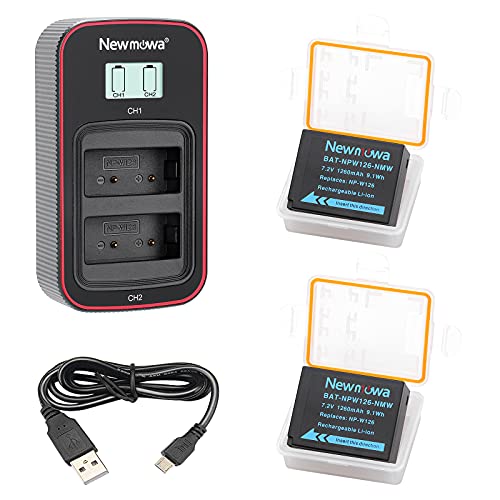 Newmowa NP-W126 ersättningsbatteri (2-pack) och smart LCD-skärm dubbel USB-laddare för Fujifilm NP-W126 NP-W126S och FinePix X100F X-A1 X-A2 X-E1 X-E2 X-M1 X-Pro1 X-Pro2 X-T1 X-T2 X-T10 X-T20 X-T20
