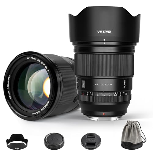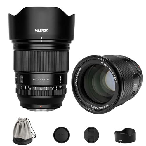 VILTROX 75 mm F1.2 Pro APS-C Prime autofokus objektiv för Fuji X monteringskamera objektiv standard kameralinser kompatibla med Fujifuilm X-T5 X-H2S X-S10 X-T30II X-T20 X-T10 X-T4/-T3/-T2/-PRO3/-M1
