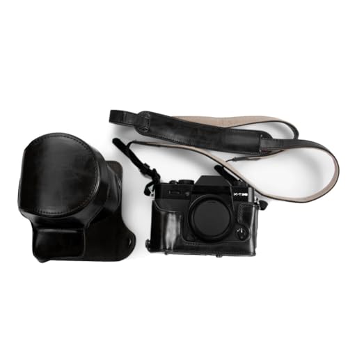 Kinokoo Fujifilm X-T30 Fujifilm X-T20 PU-läderfodral, Fujifilm X-T10 Fujifilm X-T30 och 16–50 mm objektiv, 18–55 mm med axelrem och rengöringsduk