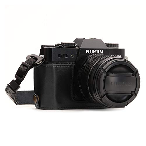 MegaGear MG957 Ever Ready läderkamera halvficka med bärrem kompatibel med Fujifilm X-T30, X-T20, X-T10 – svart