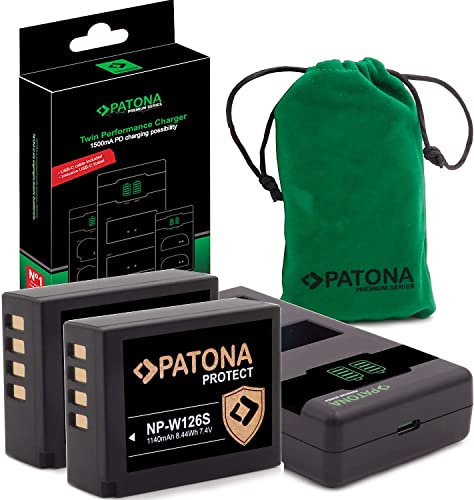 PATONA V1 Protect NP-W126s batteri 2X (1140 mAh) inklusive NTC-sensor och V1-hölje – med PD Performance USB-laddare 161957 (1000 mA) - Fuji X100VI X-M5 X-T20 X-T30 X-T30 II X-T50 etc.