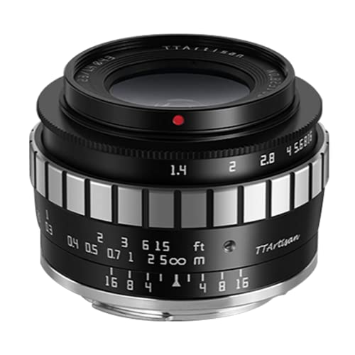 TARTISAN 23mm F1.4 objektiv vidvinkel fast brännvidd APS-C för fuji X monteringskameror X-A1 X-A10 X-M1 X-M2 X-H1 X-T10 X-T2 X-T20 X-T3 X -T4 X-T100 X-T30 X-PR01 X-PR01 XS10 och Mer (silver).
