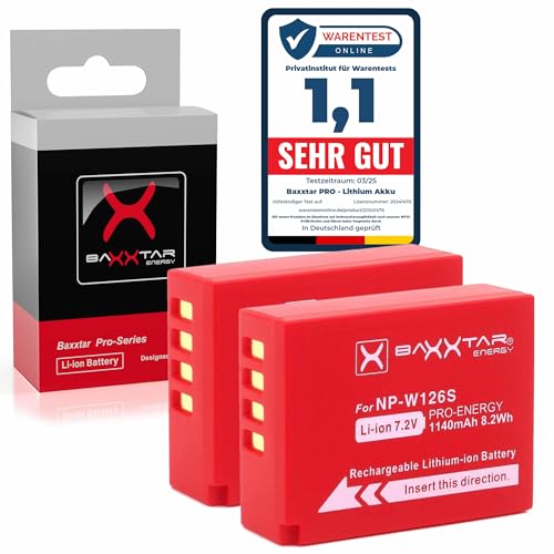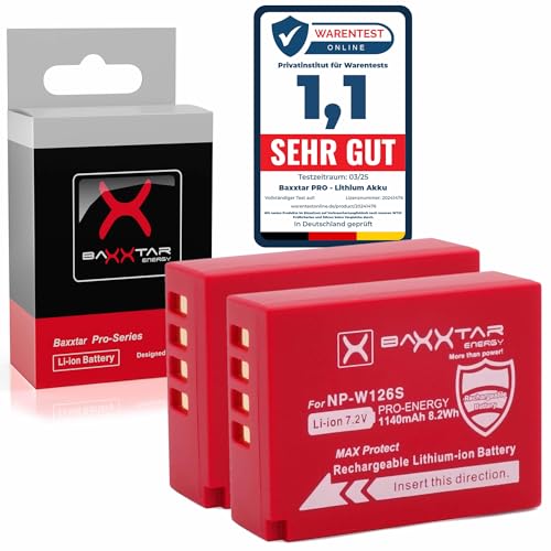 Baxxtar PRO NP-W126s NP-W126 batteri 2x (äkta 1140mAh) Kompatibel med Fuji Fujifilm FinePix X100F X100V X-A5 X-A7 X-A10 X-E3 X-H1 X-M5 X-Pro3 X-S10 X-T3 X-T10 X-T20 X-T30 X-T50 X-T100 X-T200