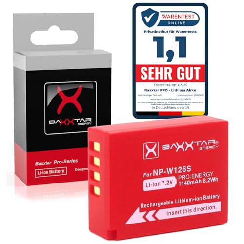 Baxxtar Pro 2X batteri NP-W126s – serie MaxProtect (1140 mAh) med aktiv NTC-sensor och V1-skyddsfodral – utan begränsning av användning - Fuji X100VI X-M5 X-T20 X-T30 X-T30 II X-T50 etc.