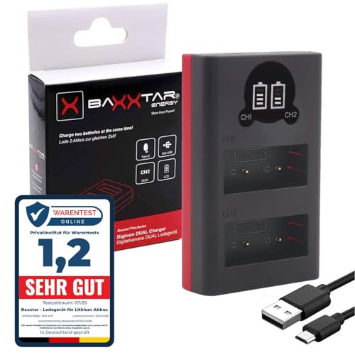 Baxxtar NP-W126s NP-W126 Batteri Laddare kompatibel med Fujifilm - Mini USB dubbel/LCD-laddare - Strömförsörjning via USB-C eller Micro-USB - för X-M5 X100VI X-S10 X-T20 X-T30 II X-T5 X-T50