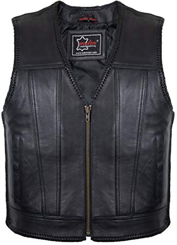 MDM Läderväst med dragkedja för män svart gjord av äkta oxläder (DE/NL/SE/PL, Alfa, XXL, Regelbunden, Regelbunden)