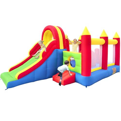 Ballsea Uppblåsbart slott XXL – stort uppblåsbart slott med studsmatta, rutschkana och klättervägg (utan blåsare)