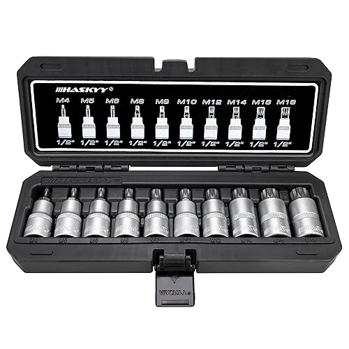 DAKCOS 10 st XZN spline sockelset, M-typ, M4-M18 för 1/2 tum, 3/8 tum, 1/4 tum enhet, trippel fyrkantig spline bit set