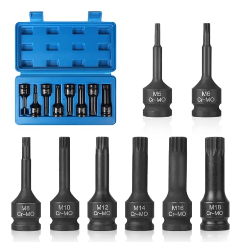 EFUTURETIME Set med 8 XZN-uttag 1/2 tum M5, M6, M8, M10, M12, M14, M16, M18 lång slaghylsa med låda, 12-sidig CR-MO-bits