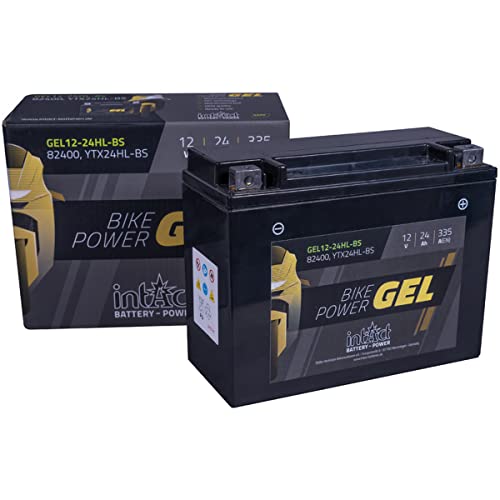 intAct - Bike-Power GEL12-24HL-BS, CTX24HL-BS, motorcykelbatteri 12V 24 Ah 335 A (EN), underhållsfritt gelmotorcykelbatteri med 30% mer startkraft, för skotrar, motorcyklar