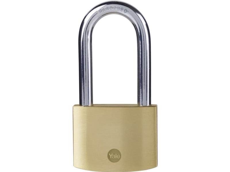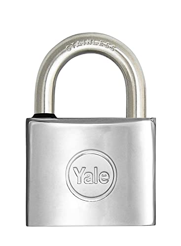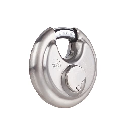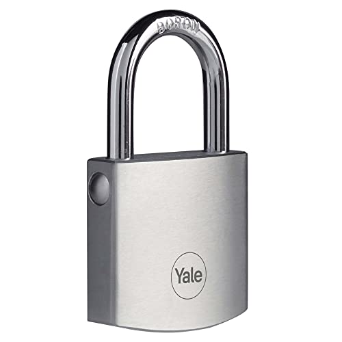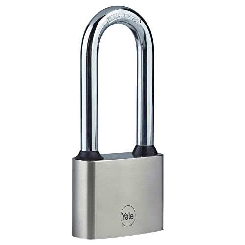 Yale Järnskiva hänglås 50 mm – nickelpläterad – härdat stål lång bygel – extremt korrosionsbeständighet för utomhusbruk