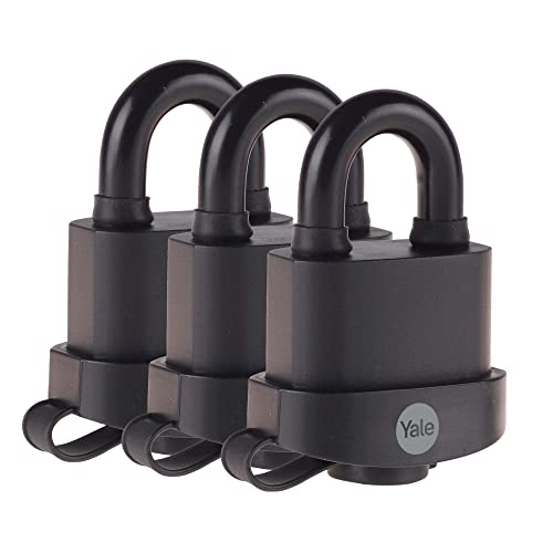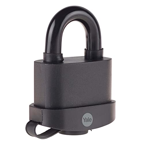 YALE Y220B/51/118/3, svarta väderbeständiga hänglås med skyddskåpa (51 mm) - utomhus härdat stålbygellås för skjul, grind, kedja - med nyckel - HÖG säkerhet