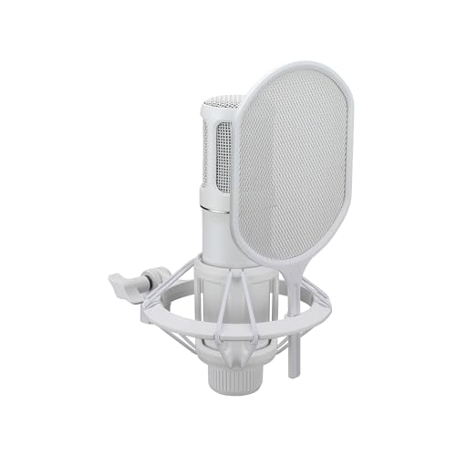 YAMAHA YCM705 Kondensatormikrofon – Studiokvalitet, 1 tums-membran, PAD -10/-20 dB, högpassfilter, 20 Hz–20 kHz frekvensomfång, hög SPL-hantering – Vit