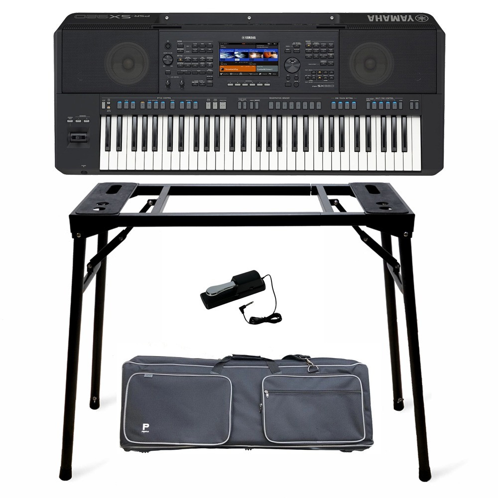 YAMAHA PSR-E360 bärbart tangentbord medföljer HPH-150-hörlurar, L-2C tangentbordsstativ och stödpedal