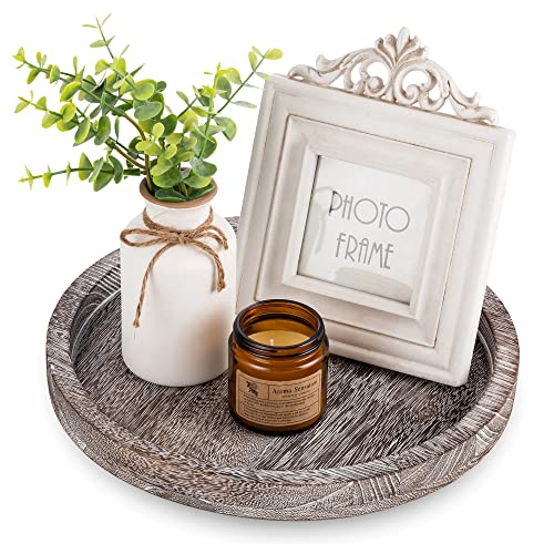 Hanobe Round Wood Candle Tray: Rustic Wooden Candle Holder White Pillar Stand Farmhouse Tea Light Plate Base for Living Room Coffee Table Centerpiece for Kitchen Counter Bathroom Home Decor,11.8"