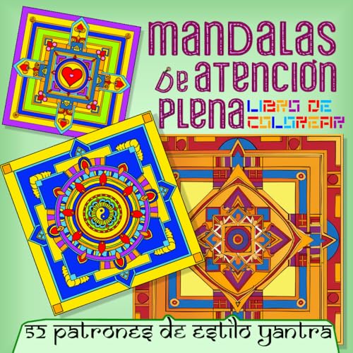 Mandalas de atención plena: Libro de colorear para adultos | 52 patrones de estilo yantra fascinantes para relajación y terapia artística | Aptos para aliviar el estrés y superar la ansiedad