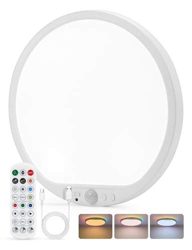 10000 mAh Motion Sensor Shed LED Ceiling Lights, 30 CM Battery Operated Rechargeable Bathroom Night Light, IP44 Waterproof, Wireless RGB Light Indoor for Garage, Stair, Porch, Corridor