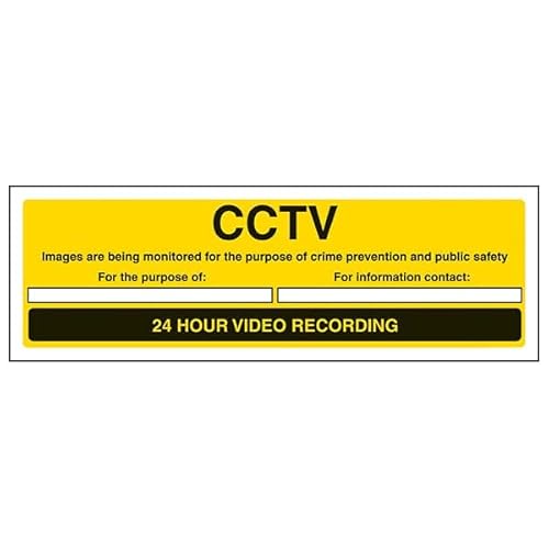 V Safety CCTV-bilder övervakas – landskap 300 x 100 mm – självhäftande vinyl – aluminiumeffekt säkerhetsskylt