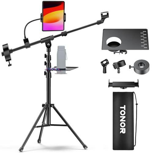 TONOR Mikrofonstativ med surfplattehållare, mugghylla, golv mikrofonstativ med höjd- och vinkeljusterbar, stativ för tung belastning med bärväska, padklämma, kompatibel med Blue Yeti, T35+