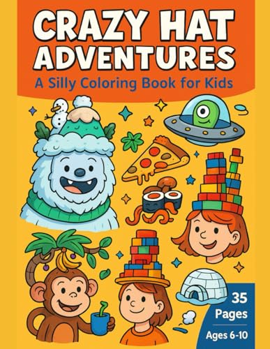 Crazy Hat Adventures: A Silly Coloring Book for Kids: 35 Pages of Wild, Wacky & Wonderful Hats to Color – From Yeti Helmets to Flying Pizza!