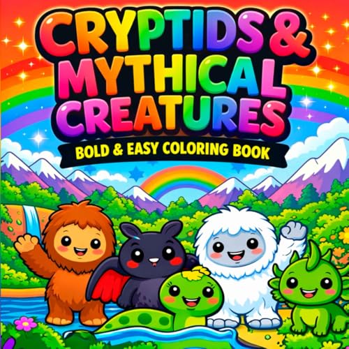 Cryptids & Mythical Creatures Bold & Easy Coloring Book for Toddlers: 35 Unique Bigfoot, Yeti, Kraken & More Creatures with Thick Lines for Kids Ages 2-5 — Single-Sided, No Bleed-Through