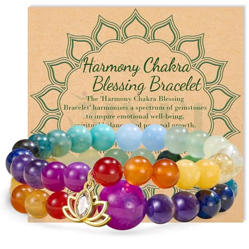 Alaoo Chakra-armband för kvinnor, 2 st chakra kristallarmband, helande balans stenarmband med livets träd, yoga reiki armband, jul födelsedagspresenter för kvinnor flickor vän syster mamma, 19