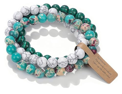 Dochais 3 st pärlarmband för kvinnor, justerbara bohemiska boho-armband, yoga pärlarmband, livets träd, kristallarmband för kvinnor, natursten armband damer, 10 cm, Sten