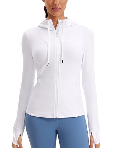 CRZ YOGA Kvinnors Butterleuse Full Zipper Löpning Jacka Zip Väska Sport Gym Hoodie Mesh Hoody Sweatjacka med tumhål Vit XXS
