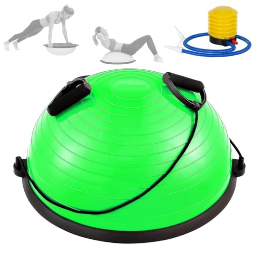 Wiltec Halvboll Ø58 cm, 25 cm hög, balanstränare, fitness boll, balansboll med träningsband för gymnastik, pilates, yoga, träning, jämnvikt balance ball