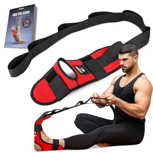 DMoose fitness fot- och vadstretchare med justerbar vadderad stretchrem för plantar fasciit, hamstring, hälsporrar och akillesseninit lindring – yoga ben stretchrem för flexibilitet