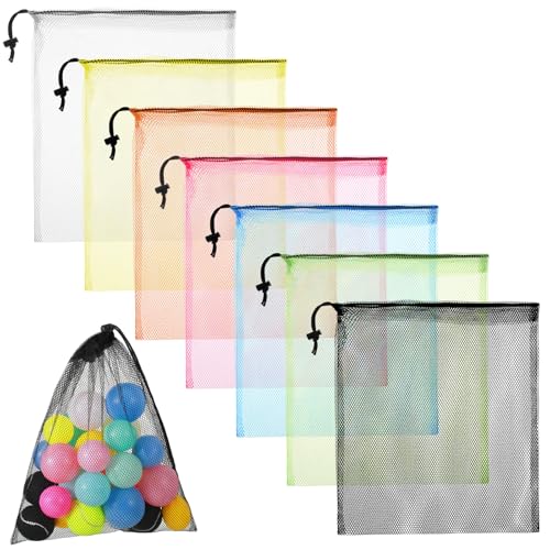 oruola 7 st nätväska dragsko, 45 x 30 cm nätväskor, väskor med dragsnöre för förvaring av pool strand boll leksaker, nätförvaringsväska för samling av resor sport gym yoga (7 färger)