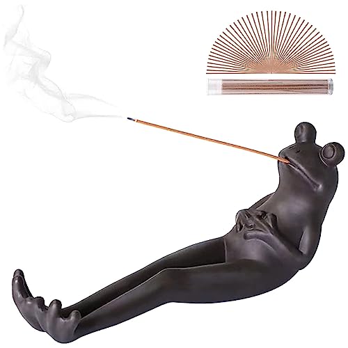ChangWanna Grodformad rökelsehållare - Keramisk rökelsehållare brännare, insenceställ med 45 sandelträ insencepinnar, rolig groda prydnad, för aromaterapi/yoga/zen/meditation/hemtillbehör/rum/kontor