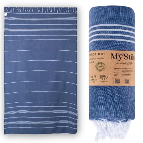MyStilo® XXL bastuhandduk hamam-handduk – stor, mjuk badhandduk 100 x 200 cm, snabbtorkande – premium strandhandduk, strandhandduk, handduk för män, kvinnor, yoga och fitness (marinblå)