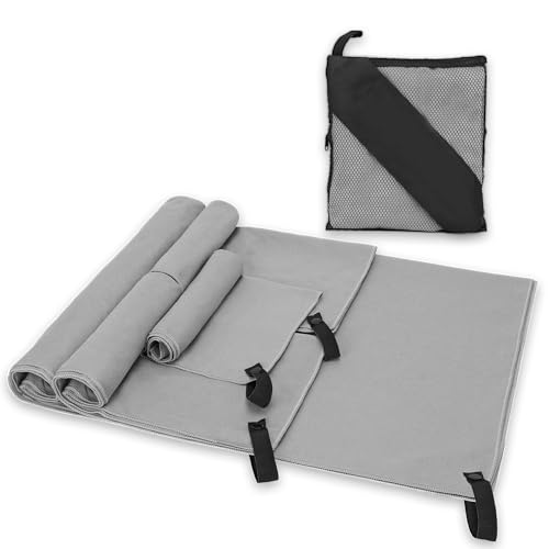 Alyvisun 4st Mikrofiberhandduk, Snabbtorkande Camping Handdukar Lätt Resehandduk Set, Superabsorberande Sport handduk i 3 Storlekar för Yoga Simning Löpning Cykling (Grå)